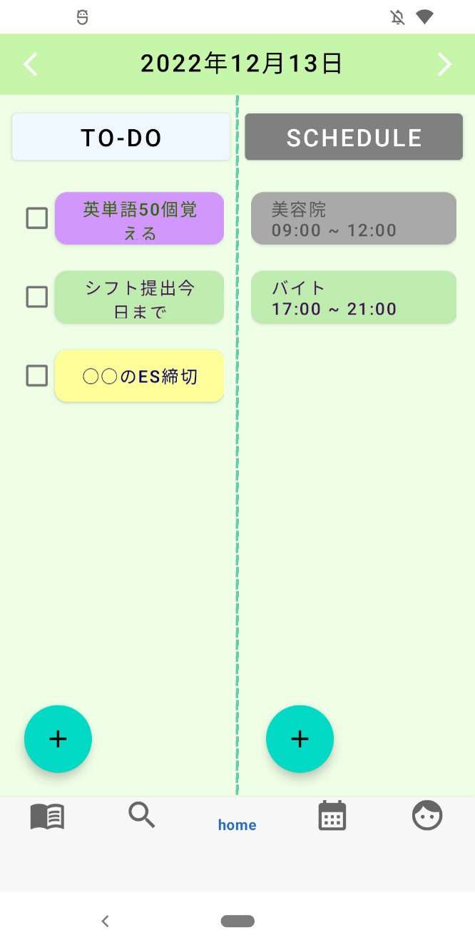 Android用プランナーアプリです。 カレンダー機能とToDo機能を用いて個人のスケジュールを管理できるだけでなく、目的毎に本としてまとめてユーザ間で共有できるアプリです。